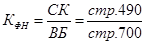 Коэффициент финансирования - показывает, какая часть деятельности финансируется за счет собственных средств, а какая заемными средствами. Рекомендуемое значение - 1,5 (т.е. 60% на 40%)