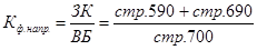 Коэффициент финансовой напряжённости - показывает долю заемных средств в валюте баланса заемщика. Нормальное значение не более 0,5. Превышение верхней границы (заемного капитала) свидетельствует о большой зависимости предприятия от внешних финансовых источников.