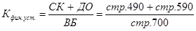 Коэффициент финансовой устойчивости - показывает, какая часть актива финансируется за счёт устойчивых источников.